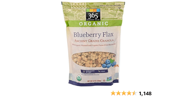 Amazon Com 365 By Whole Foods Market Granola Blueberry Flax And Ancient Grains Organic Bag 1 12 Ounce